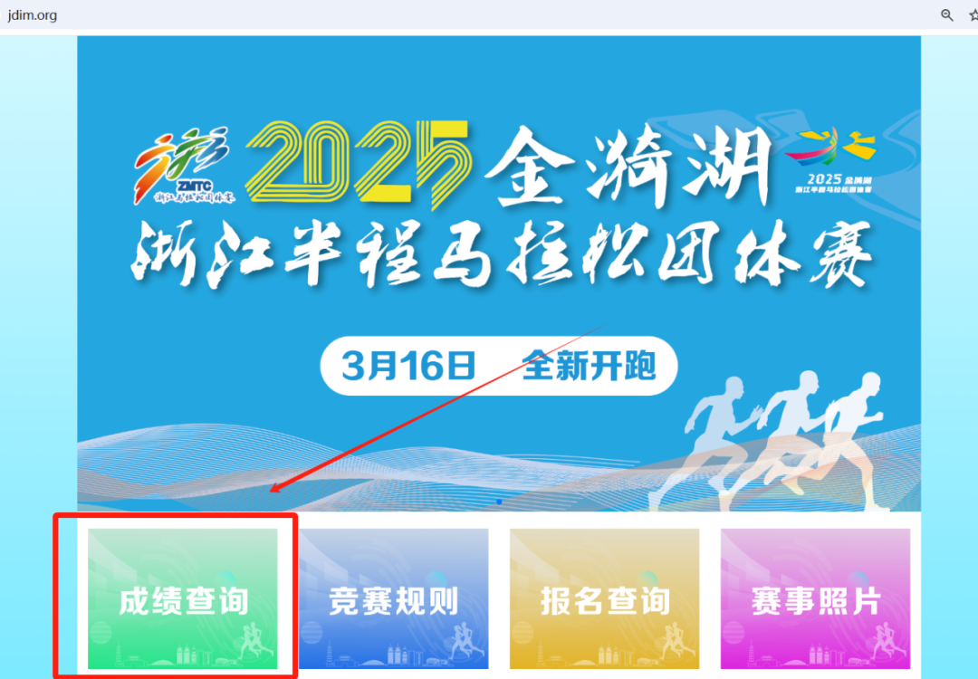 点击【浙江马拉松团体赛】公众号下方菜单栏【成绩查询】或打开官网